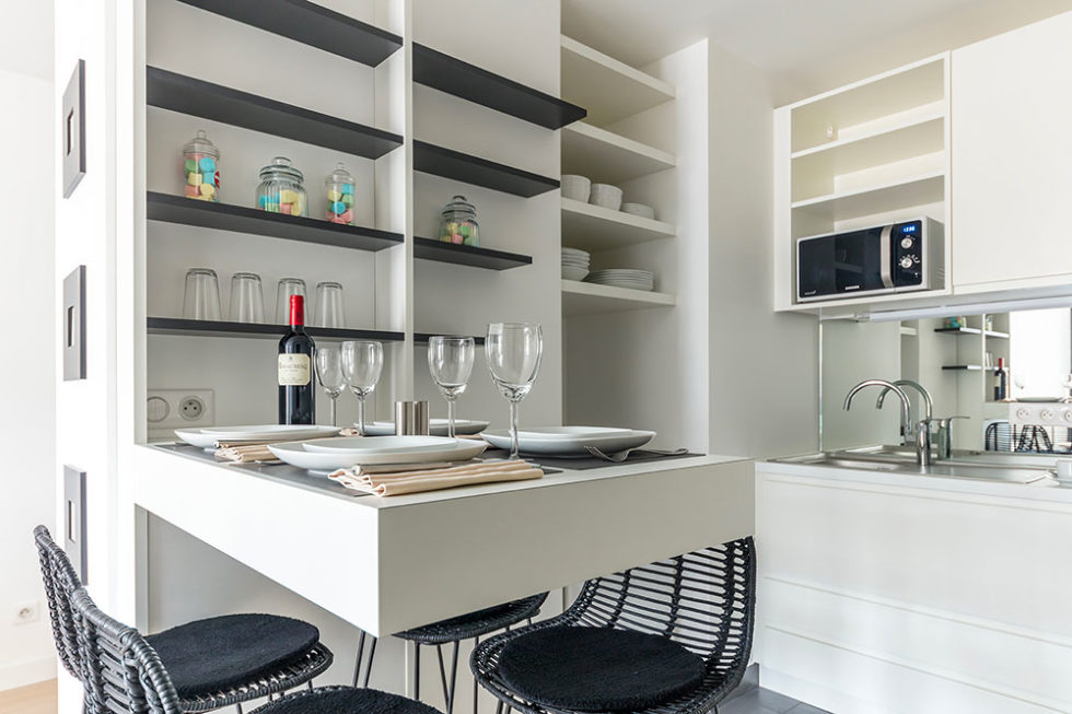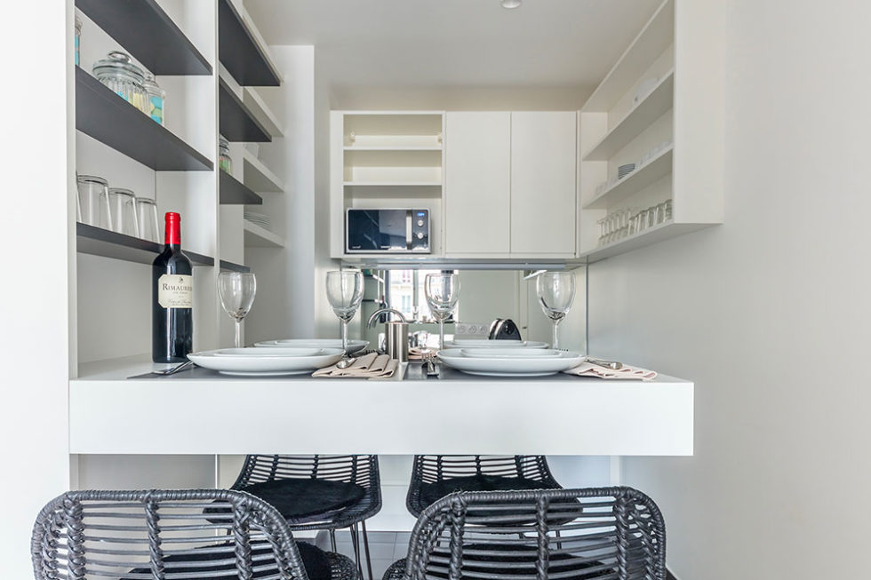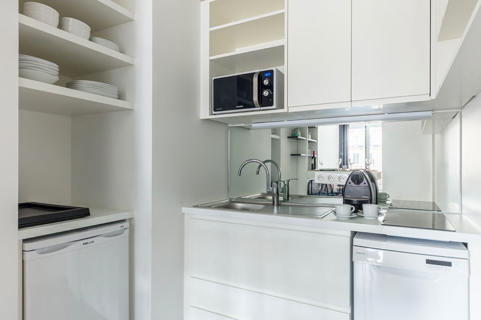 Kitchenette fully equipped for cooking (dishwasher, microwave, kettle, Nespresso machine …)